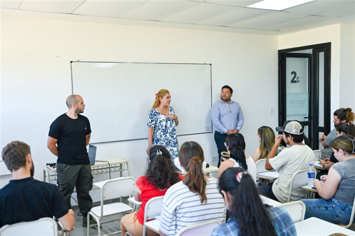 La apertura se realizó en las aulas de la Universidad de San Vicente. Allí se desarrolló una charla informativa para quienes inician su recorrido académico, con eje en la organización de las cursadas y el alcance de las propuestas formativas.