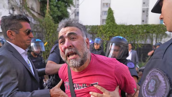 La reacción fue inmediata. Al menos una docena de personas fueron detenidas por efectivos de la Policía Federal Argentina. En medio del operativo, también resultó agredido y detenido un camarógrafo del canal A24, que registraba lo que ocurría en el lugar.